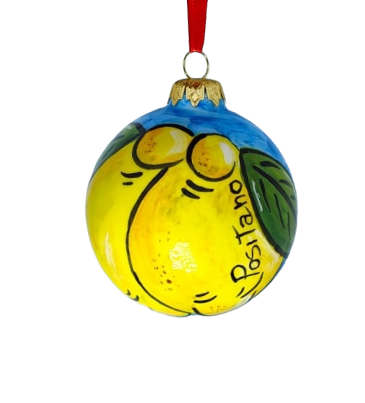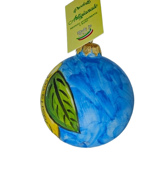 A refined hand-painted ceramic Christmas bauble, embellished with a vibrant reproduction of lemons from the Mediterranean coast of Sorrento and Amalfi.