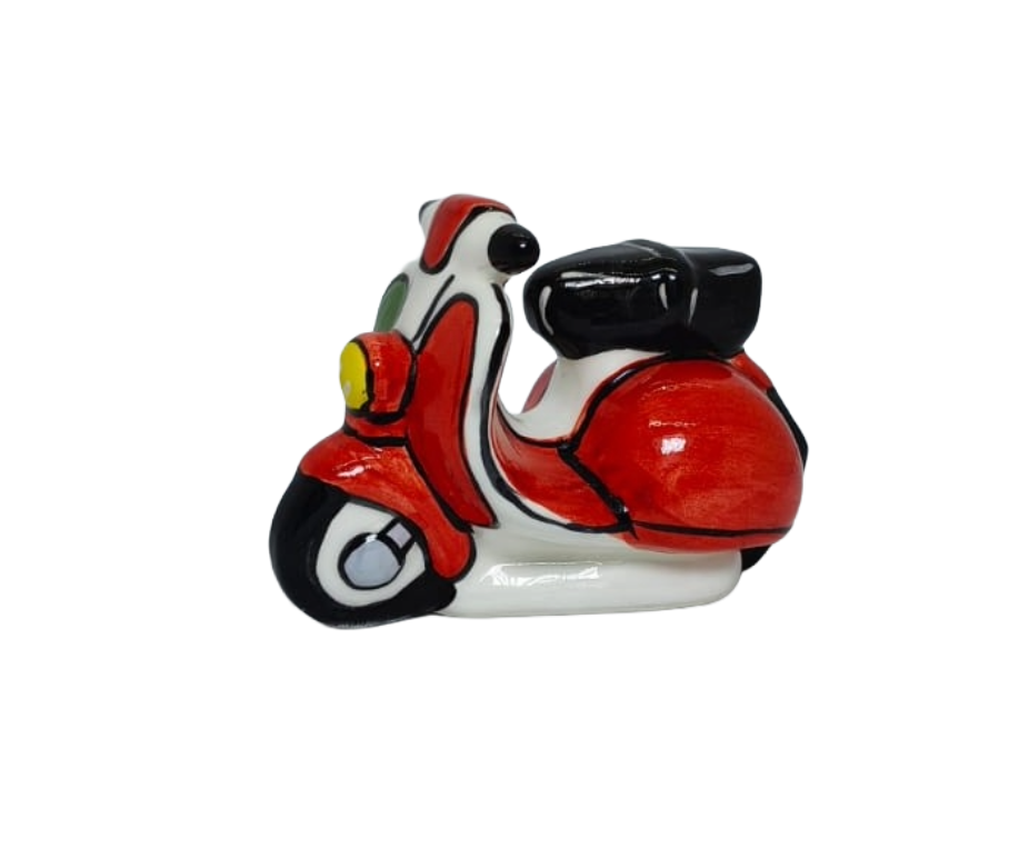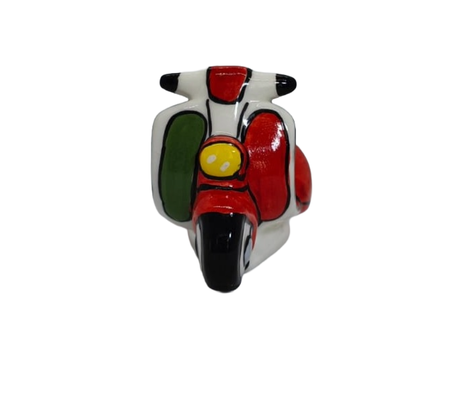 The smooth, shiny surfaces highlight the soft lines typical of the most iconic Italian design scooter, while the detailed hand-painted brushstrokes add an authentic, artisanal touch.