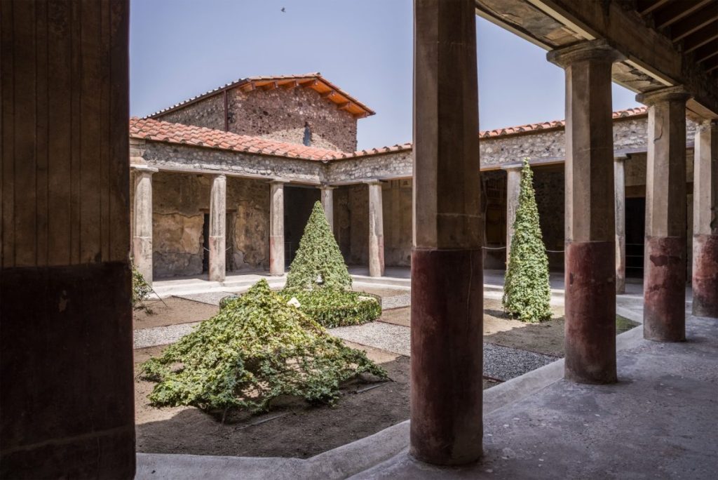 Anche la casa delle Nozze d’Argento fu colpita dalla caduta delle rocce vulcaniche che provocarono il cedimento di alcune colonne che sorreggevano l’atrio e parte dei muri perimetrali.